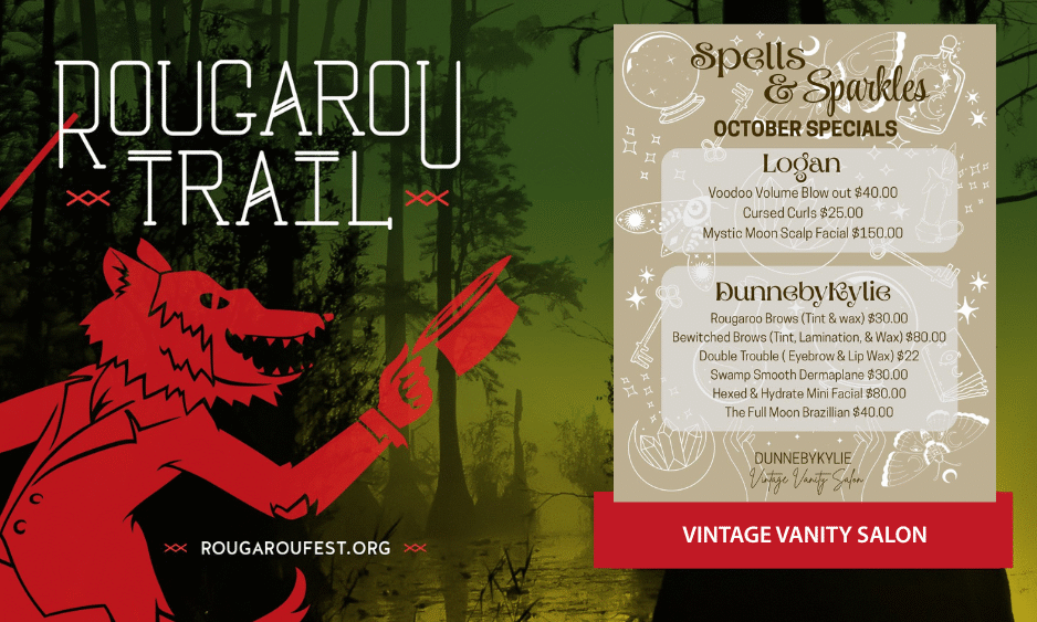 The Rougarou Trail celebrates local businesses who create a special Rougarou-themed item or promotion during the month of October! From spooky cocktails to bayou bites — the trail offers festival-goers one more great reason to explore our area!